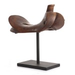 Description: The wooden horse saddles are commonly found in Sumba, Sumbawa and Lombok and date back approximately 100 years. They were used for racing and everyday work and made predominately from Teak. Today, wooden saddles are still used by some riders in Sumba but most riders have converted to leather. Sumba and Sumbawa ponies are still used for pack, riding and light draft work. They are a notoriously strong breed despite the fact that they rarely reach 13 hands in height. Young boys also ride these ponies in traditional dance competitions where they maneuver them in patterns with decorated bells on their knees to chime in rhythm to the drumming.