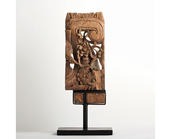 Description: --- Antique Teak House Carving on Stand --- Historically on the island of Java in Indonesia, wealthy and prominent families constructed their homes out of teak wood for longevity, beauty and strength. It was a symbol of wealth to have carvings throughout the interior and exterior of the home. - These carvings were created to organically flow as an integral part of the design of the home and the permanent structure of the building. Carvings were displayed and the more complicated the carving, the wealthier the family. - It is very rare to find any traditional style wooden houses currently being constructed on Java due to the cost. Thus, any pieces or sections of antique wooden house carving are highly sought after and are highly collectable, fetching extremely high prices per piece and per section.