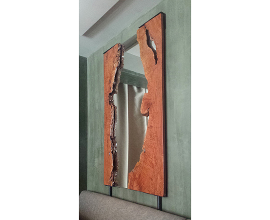 Description: Sustainably harvested materials were used to create these beautiful, custom lychee-wood framed mirrors for a restaurant in Chicago, Illinois.