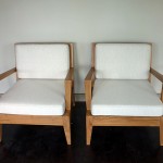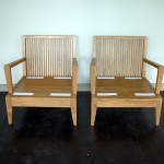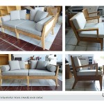 Description: Custom Made Teak Lounge Sofa and Teak Chairs for an Outdoor Project in Singapore. The Lounge Sofa measures 72"L x 32"D x 31.5"H and is made from Teak Wood, oil finished and with upholstered fabric cushions. The Chairs are both a matching set measuring 34"L x 34"D x 39"H and both made from Teak Wood, oil finished and with upholstered fabric cushions. Both fabrics were COM.