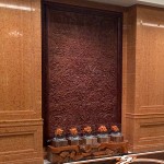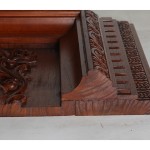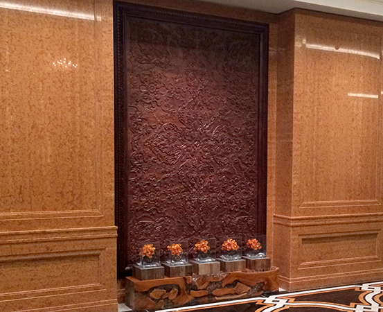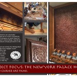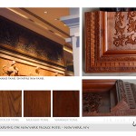 Description: Sustainably harvested material was used to create a beautifully hand-carved mahogany art panel based on a custom design, inspired by the historic details already prevalent in this New York Hotel where this panel was installed in the lobby. The Carving consists of deep reliefs and medium reliefs with a frame showing a dentil trim carving.