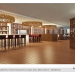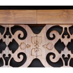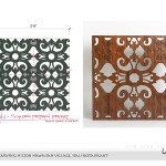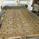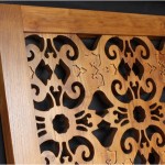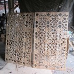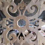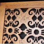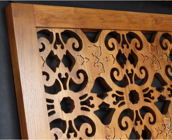 Description: Custom Carved Floral Pattern in Teak Wood for a Hotel Restaurant in Hawaii.
