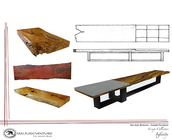 Description: The Escape Collection Infinity Bench shown in Lychee (upholstery not included). All furniture is made according to individual project specifications. Sizes, designs, and materials can be modified in line with manufacturing recommendations.