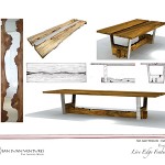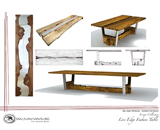 Description: The Escape Collection Live Edge Feature Table, shown with a Lychee top and Stainless Steel base. All furniture is made according to individual project specifications. Sizes, designs, and materials can be modified in line with manufacturing recommendations.