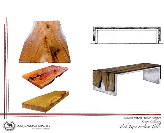Description: The Escape Collection Root Feature Table shown in Lychee and Stainless Steel. All furniture is made according to individual project specifications. Sizes, designs, and materials can be modified in line with manufacturing recommendations.